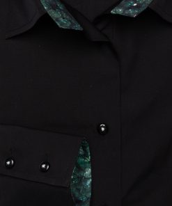 Transform your style with our women’s black poplin fitted shirt, featuring a charming clover inner lining print. The sleek black poplin exterior is perfectly contrasted by the playful clover pattern inside, adding a touch of uniqueness to a classic piece. Designed with a classic collar and double-button cuffs, this slim-fit shirt offers both sophistication and comfort.Pair it with tailored trousers and heels for a polished look.