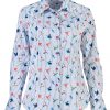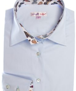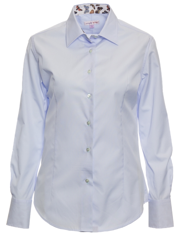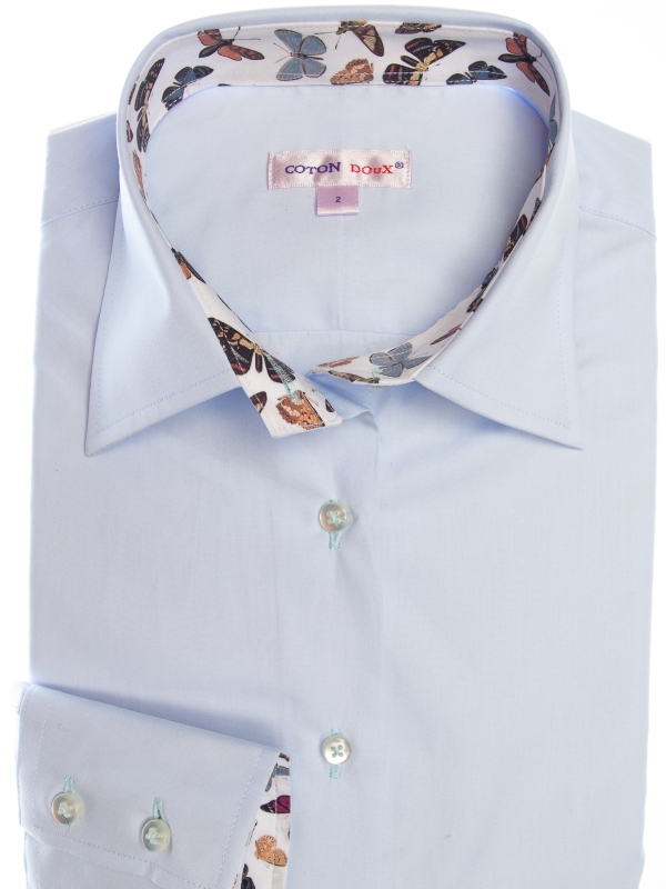 Coton Doux Women’s Blue Poplin Fitted Shirt With Butterfly Inner Lining Print