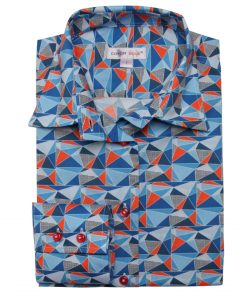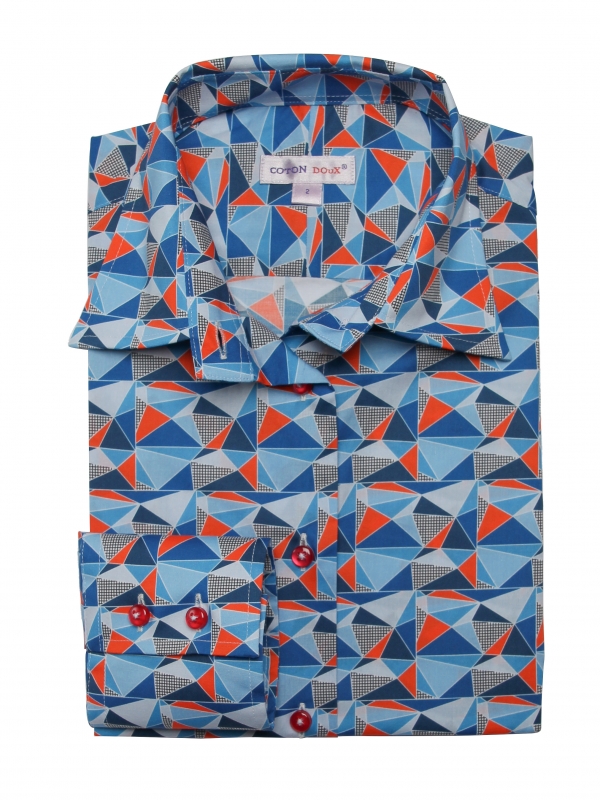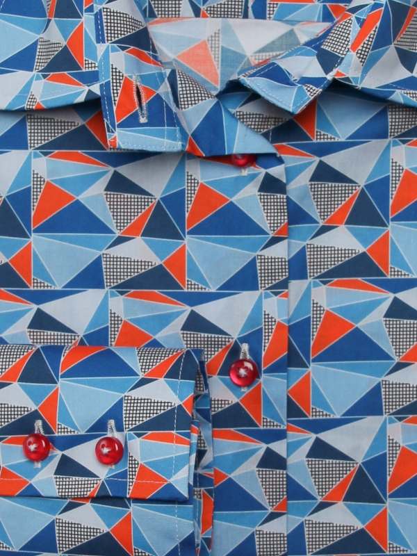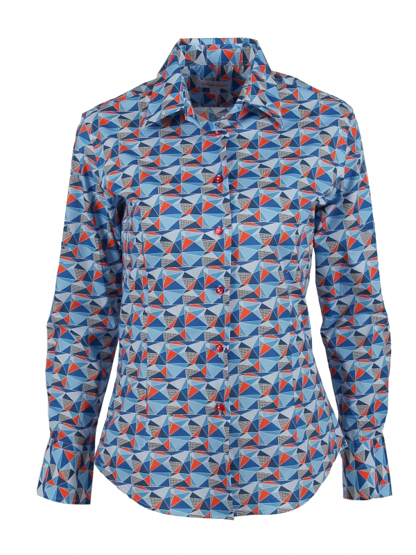 Dive into the deep illusion of this blue and red mosaic print shirt. All eyes will be lost reinforced by its classic collar and double button cuffs but no need to worry, you won’t be lost! Push the illusion even further by matching this slim-fit blouse with high-waisted navy blue pants and small black boots. Thinking about it in a more casual way? It will also work well slipped into a white denim skirt.
