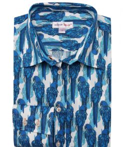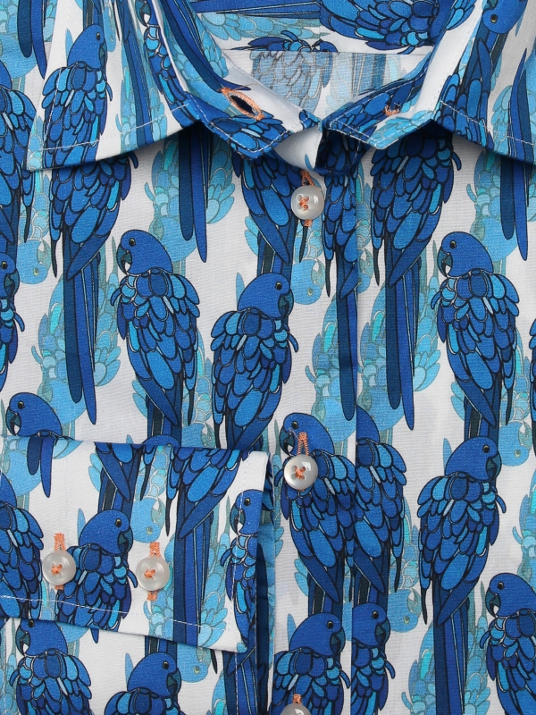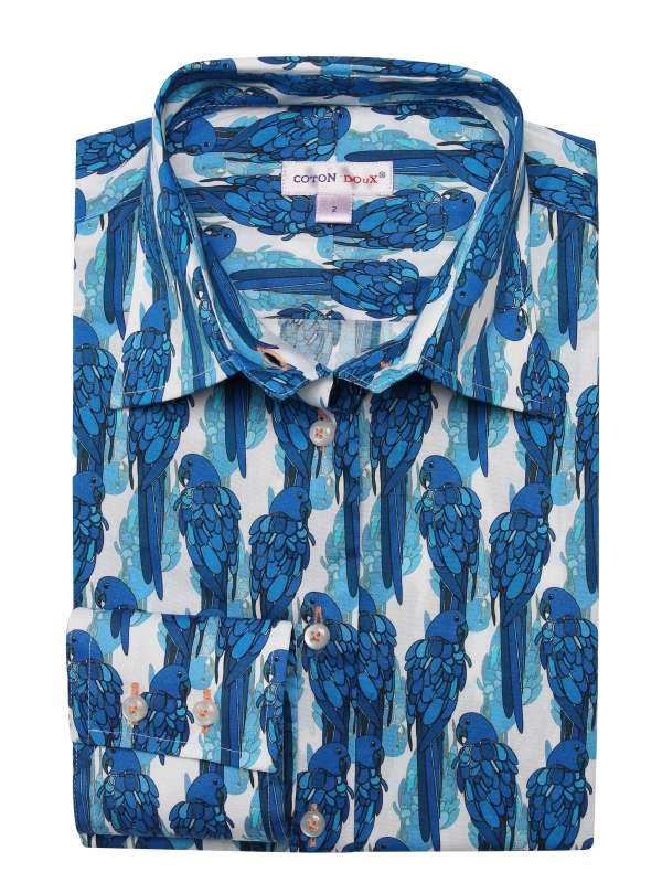 Parrots are the most colorful birds in the world! Let’s be wise here by playing the sobriety card with this navy blue and white duo. You can match this slim fit shirt with high waisted white denim shorts and a pair of white mules. If the weather is cool, opt for a navy suit jacket and have fun bringing out the feathers in the print of the classic collar and double button cuffs. With each flight you will show a rare elegance…