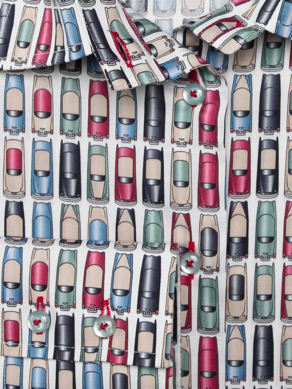 Lovers of strong sensations and beautiful cars, let yourself be seduced by this shirt! To avoid finishing last in the race, we advise you to combine this print with a pair of slim charcoal gray pants and a pair of white sneakers for a modern and urban look. Classic collar, slim fit and double button cuffs will finish confirming that for you the subject is mastered. On your marks, get set, go!