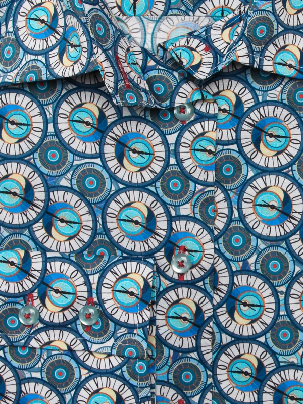 Don’t run out of time with this clocks print shirt! Be even earlier, you’ll have time to raise your classic collar and elegantly accentuate your double-button cuffs with a charcoal gray jacket. To be even more on time, we suggest you highlight the slim fit with bootcut denim pants and a pair of white sneakers. It’s your time, no doubt about it.