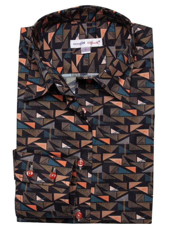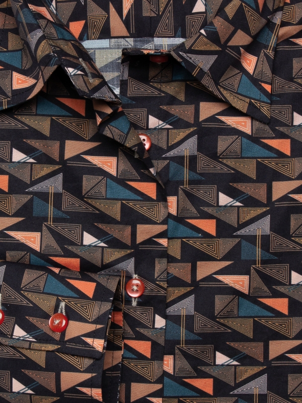 Elevate your style with our Triangle Print shirt, where bold geometric patterns infuse originality and modernity. This shirt features an eye-catching triangle design that adds a distinctive edge to any outfit. The classic collar and double-button cuffs offer a touch of refined elegance, while the slim fit ensures a sleek, tailored silhouette. Ideal for making a statement, pair it with a black suit and leather shoes for a sharp, sophisticated look.