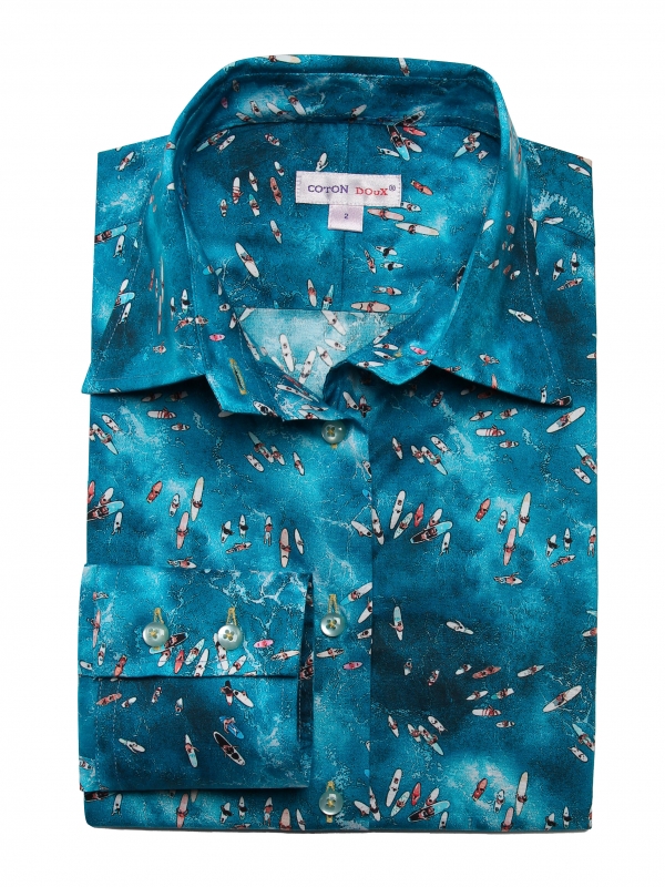 Coton Doux Women’s Fitted Shirt With Surf Print