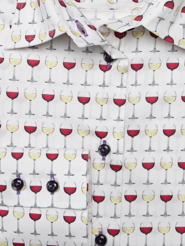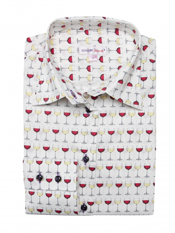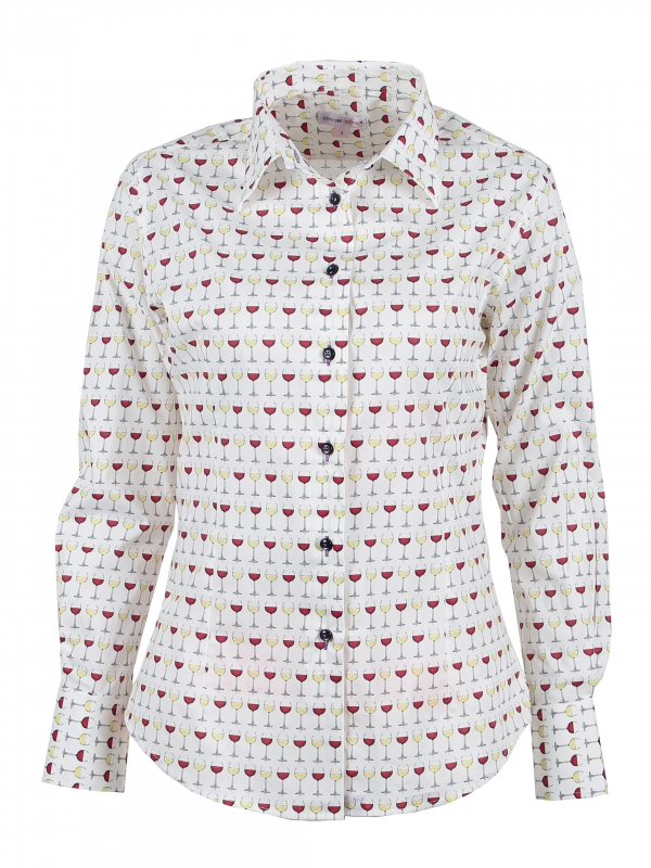 You don’t have to be a wine connoisseur to enjoy this wine glasses printed shirt. If you’re a fan of good drinks, you’ll want to add it to your shopping cart and dress it up for a night out with friends. Its classic collar and double button cuffs will allow you to enjoy the good wine even more. Wear it without moderation by associating this slim fit blouse with black relaxed fit trousers and a pair of nude pumps.