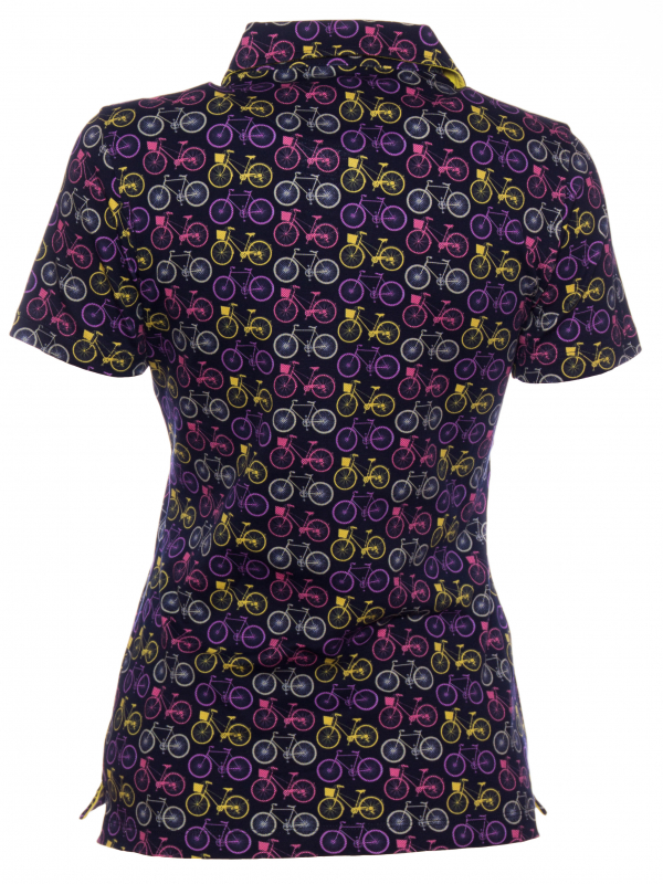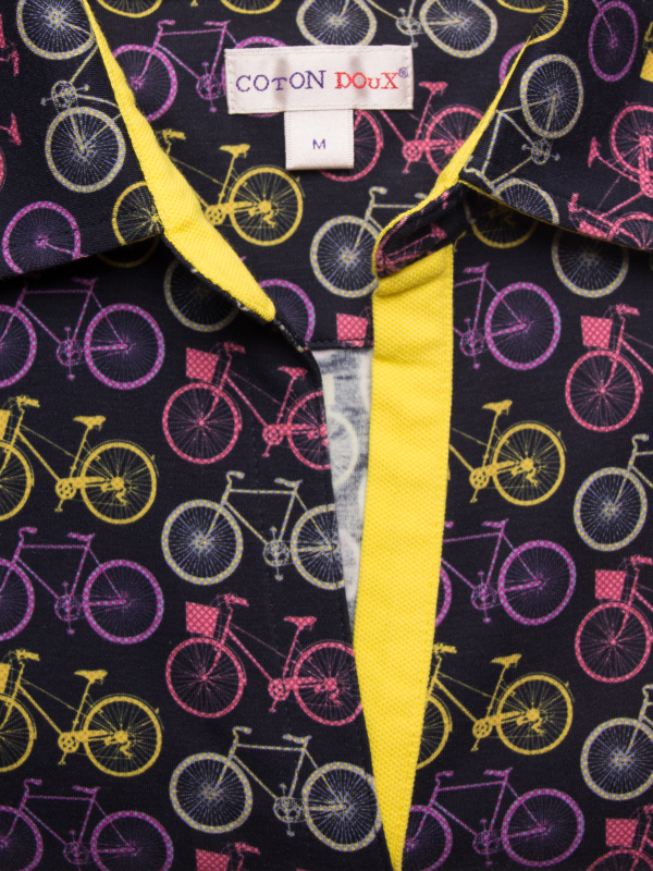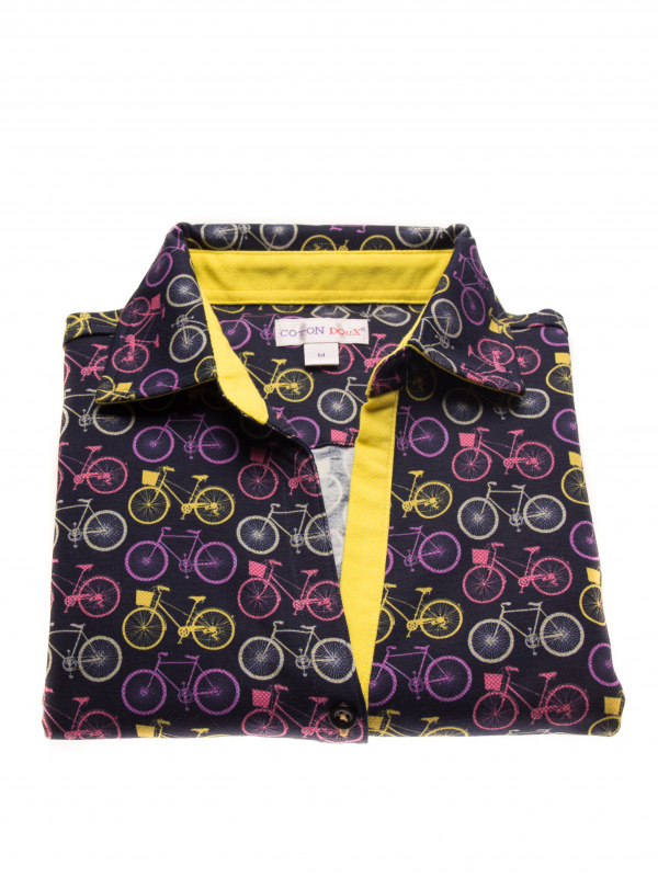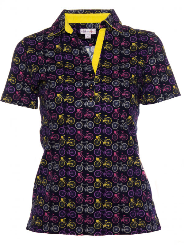 Saddle up for this new week with this Women’s slim fit polo with bicycles print. Easy to wear over jeans, you will appreciate its mercerized cotton jersey and its delicate fitted cut while you wear it. Enhance the chic look by wearing it closed thanks to its three-button button placket and yellow piqué collar. Keep it open for a more comfortable look.