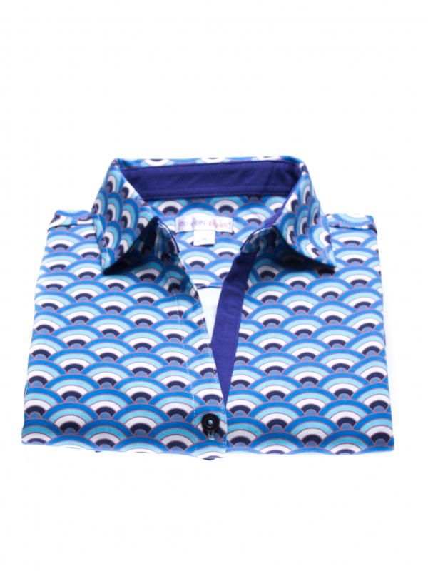 Show off your style subtly with this Women’s slim fit polo with fan print. The graphic effect of this future must have and its blue tones will go perfectly with any outfit, from the simplest to the most eccentric. The chic touch? Its fitted cut, piqué collar and three-button placket!