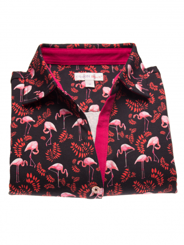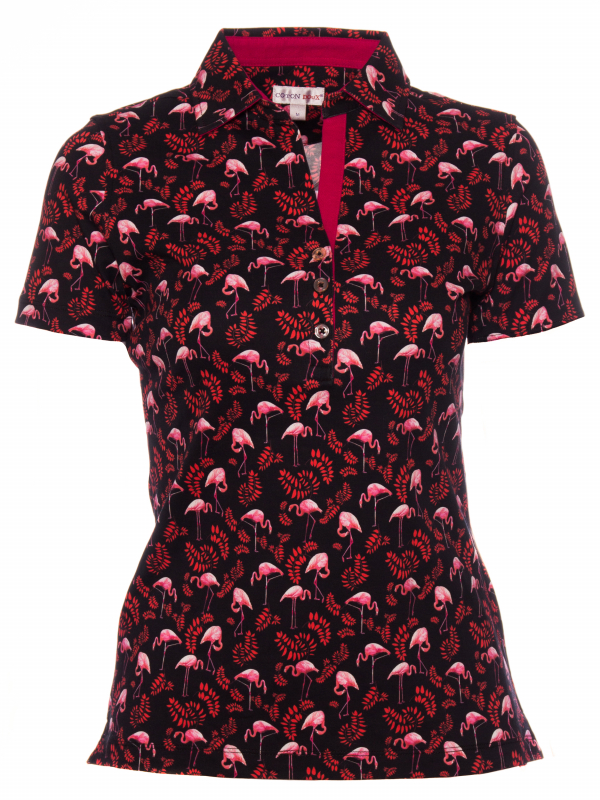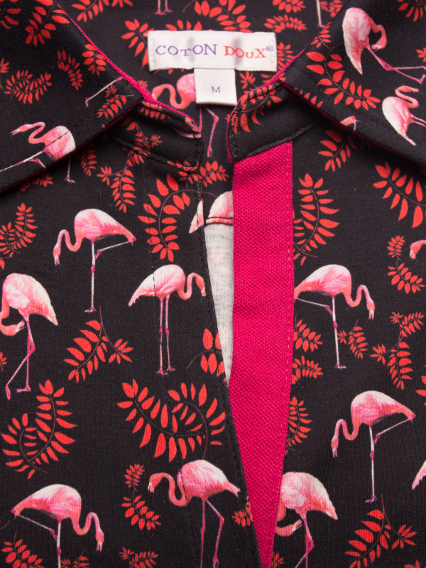 Coton Doux Women’s Slim Fit Polo With Flamingo Print