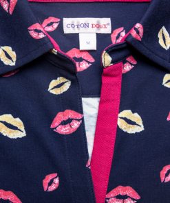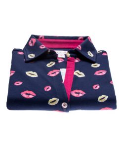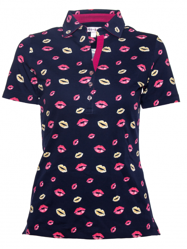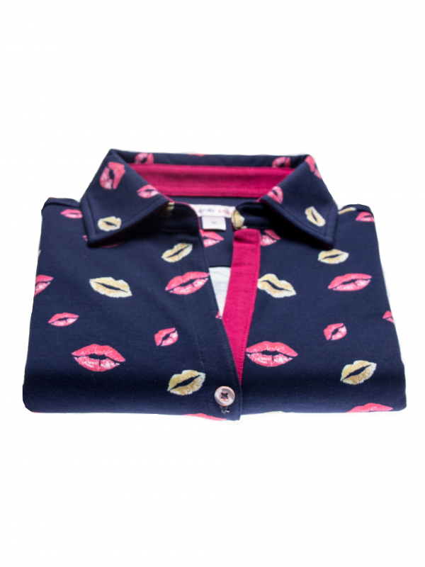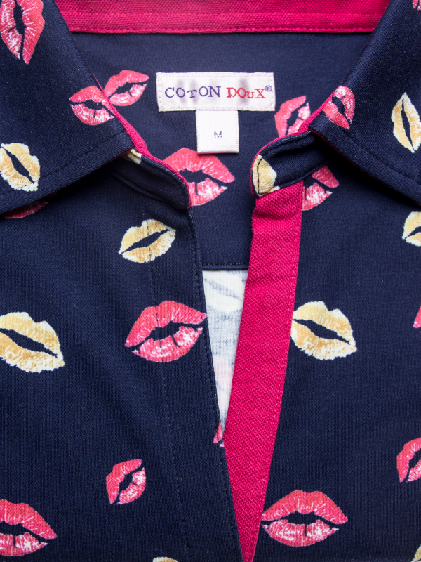 Need a bit of affection and sweetness? This Women’s polo with lip print will comfort you! Made of mercerized cotton jersey, this slim fit polo shirt will dress you up in a feminine way. To reveal the pink piqué collar, wear it open and enjoy the cotton jersey. It would be a mistake to avoid it!