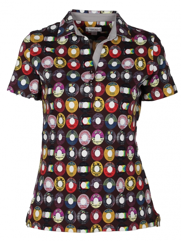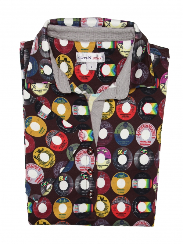 Nostalgic for the old ways of playing your favourite songs? Then don’t hesitate to slip on this mercerized cotton jersey polo shirt with its vinyl print! Its originality will only be matched by its lightness. The cotton piqué collar and the slim fit will not make you say otherwise. The burgundy background will be ideal to pair with light grey trousers to form your outfit of the day! But don’t forget to fasten the buttons on your three-button placket before going out.