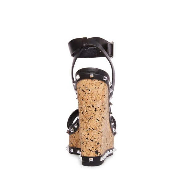 Meet BEHATI — a seductive new sandal with a punk-approved twist! Perched atop a towering cork wedge, this sky-high style takes an edgy turn with metal pyramid stud embellishment.