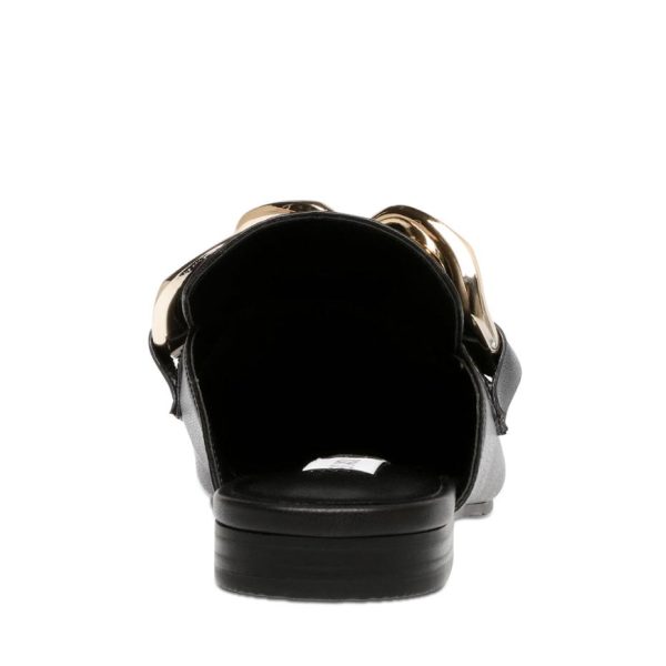 A gigantic chain link strap lends lighthearted luxury to this classic mule — a choice silhouette of the season and favorite of cool girls everywhere.