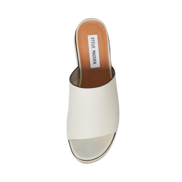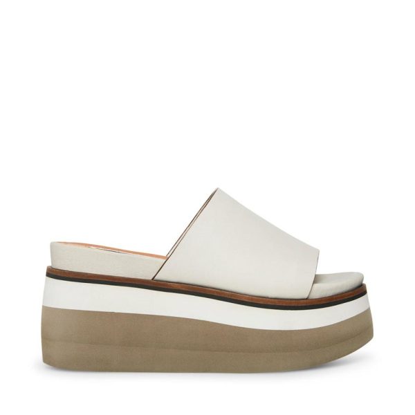 Sleek lines, tasteful color blocking and a raised vamp distinguish this frame-boosting slide, which offers major lift via a stacked platform sole.