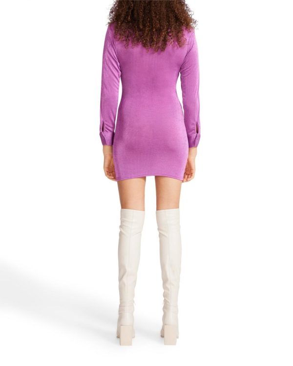 Button me up. The Long Sleeve Button Up Dress features a mini hemline, tailored collar, and ruched detailing along the button placket.