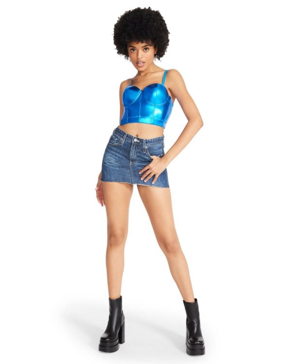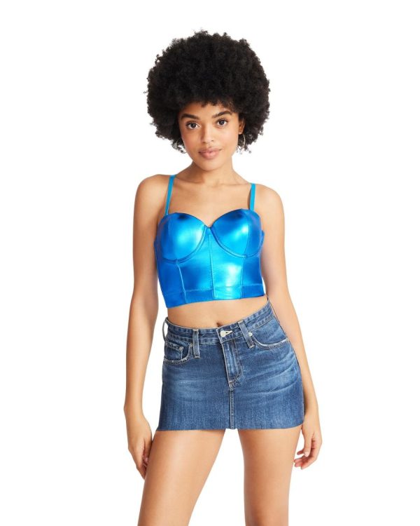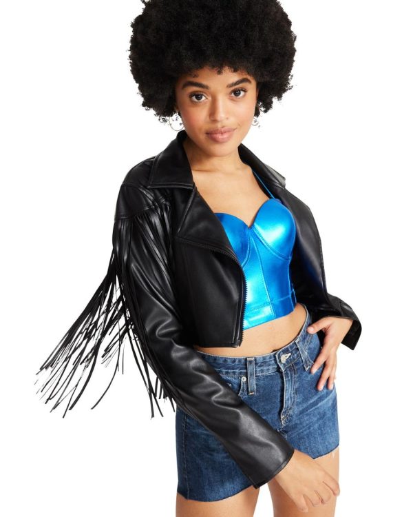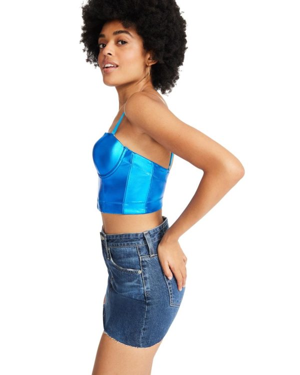 Show some skin in our metallic bralette. Wear with a leather jacket for a sexy cool appeal.