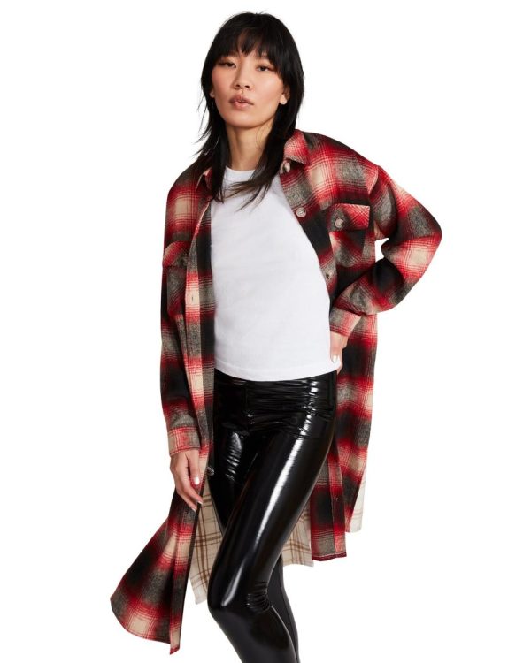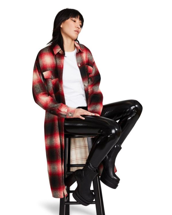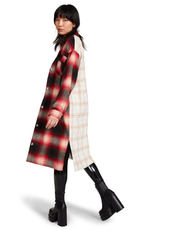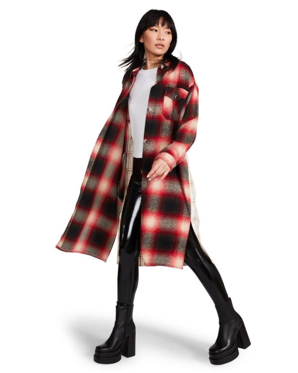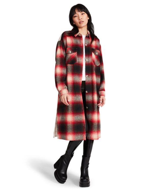 Steve Madden Mixed Plaid Duster Red | Womens Jackets & Coats