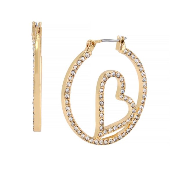 Steve Madden Rhinestone Heart Hoop Earrings Crystal | Womens Jewelry